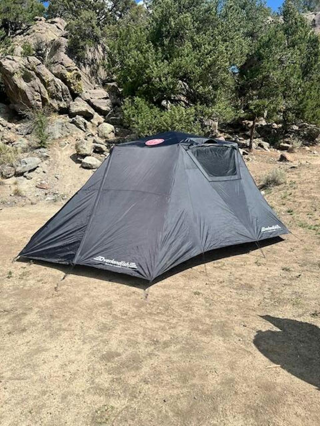 This newly designed rainfly is meant to keep ALL the elements out and keep all the ventilation circulating. We designed this fly to cover the entire tent keeping you and your basecamp completely out of the elements while still being able to access all the ventilation possible to keep your tent cool in the summer.